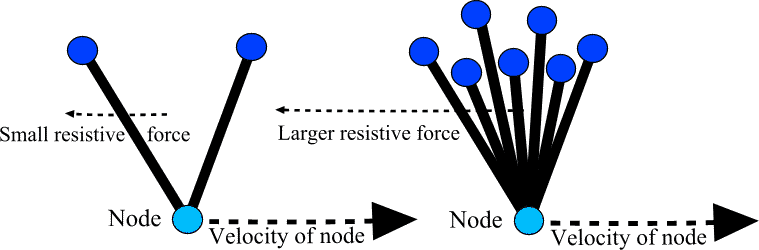 ![]() The force applied is a resistive (or frictional force). Making the force larger has diminishing effects, and making it infinitely large has (at most) the effect of minimizing the node's motion in that direction during the current time step.